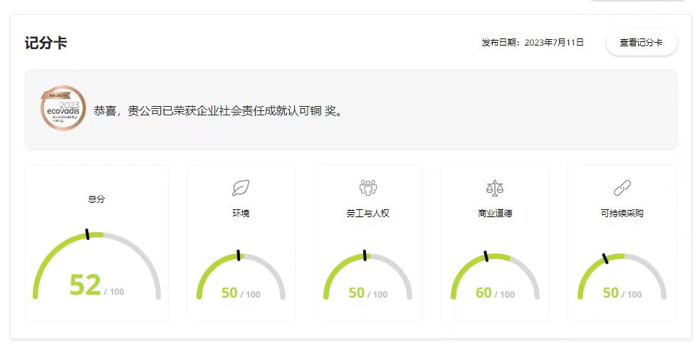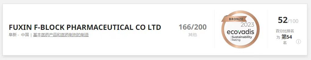 在阜新孚隆寶醫(yī)藥科技有限公司全體員工的不懈努力下,我司于2023年7月11日順利通過Ecovadis官方審計(jì),并獲得銅獎(jiǎng)。